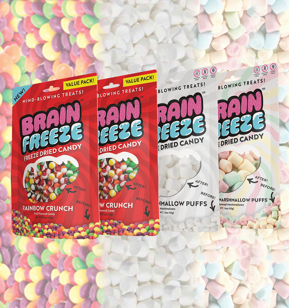 Indulge in the magic of Brain Freeze™ Mini Marshmallow Puffs – where snacking meets pure delight in mini form!